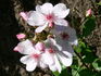 Polyantha.  Earth Kind ™.  Pink, summer heat can turn the flowers almost white..  Mild, apple fragrance.  Small, double (17-25 petals) bloom form.  Continuous (perpetual) bloom throughout the season.  USDA zone 4b through 9b.  Height of 2'  to 4'  (60 to 120 cm).  Width of 2'  to 4'  (60 to 120 cm). Ann & John Bentall (1932).