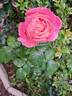 Hybrid Tea.  Rose-pink, orange-pink shading. [Rose-pink.].  Strong, anise, apple, apricot or peach, damask, fruity, lemon fragrance.  Very large, very full (41+ petals), borne mostly solitary, old-fashioned bloom form.  Blooms in flushes throughout the season.  Height: 39" to 6' (100 to 185cm).  Width: up to 20" (up to 50cm). Alain Meilland (1940-....) (2006).